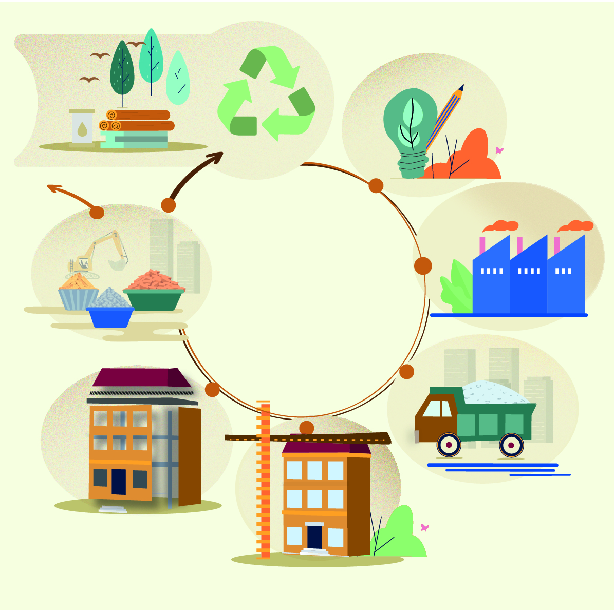 - Ozaveščanje učiteljev, v sistemu poklicnega izobraževanja in usposabljanja in v gradbeništvu, o celostnem pomenu gradnje po načelih krožnega gospodarstva