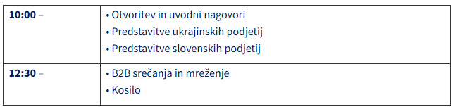 Ukrajinska podjetja bodo predstavila svoje aktualne potrebe in projektne načrte, slovenska podjetja pa svoje tehnološke rešitve, kompetence in interes za vključevanje v projekte obnove in razvojne programe EU in Energetske skupnosti.
