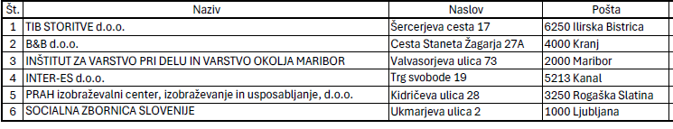 Ostale pooblaščene organizacije za izvajanje opravil za komisijo za pridobitev usposobljenosti upravljavca prevoza